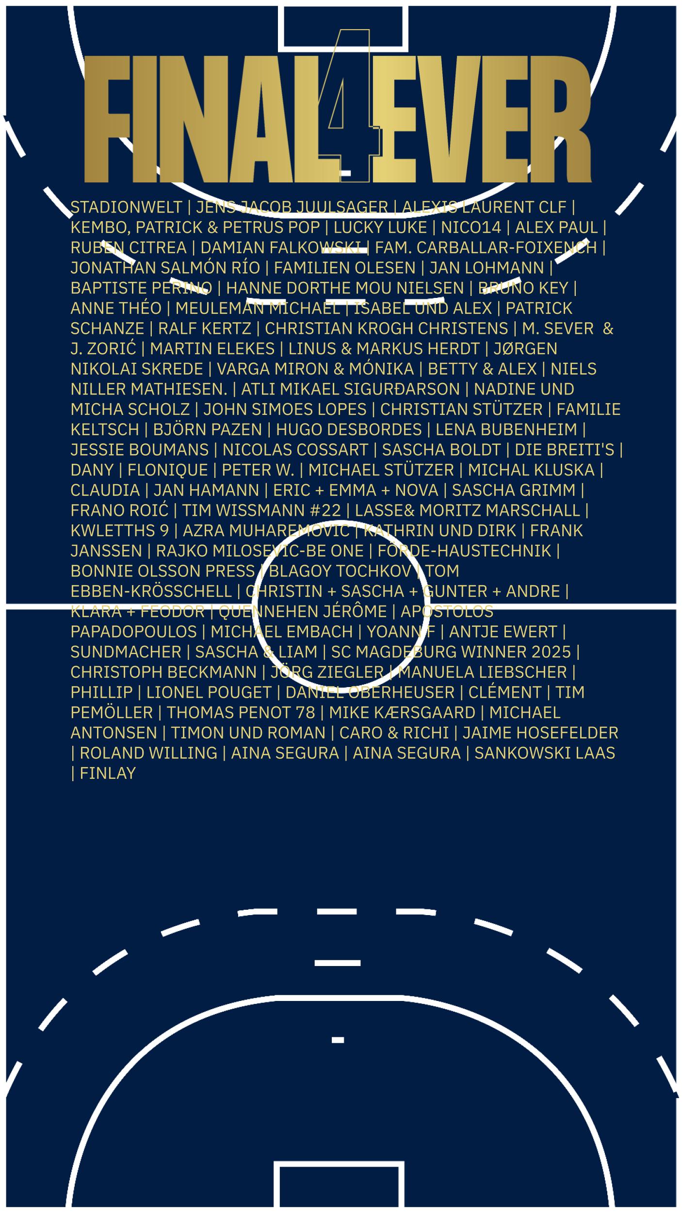 The EHF Champions League Wall is a permanent and branded section in the LANXESS arena in Cologne. Since the TruckScout24 EHF FINAL 2025, fans in the arena and at home have the unique opportunity to be part of handball history by leaving their names on the EHF Champions League Wall.